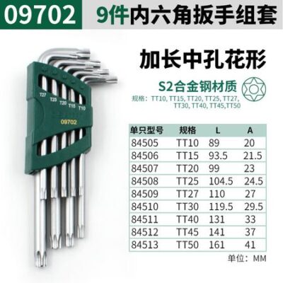 SATA 09702 Набор удлиненных шестигранных ключей «Цветок сливы» из 9 предметов с отверстием, набор в форме звезды, набор в форме цветка