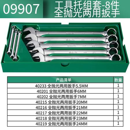 SATA 09907 Набор из 8 полностью полированных ключей двойного назначения с открытым концом для цветов сливы