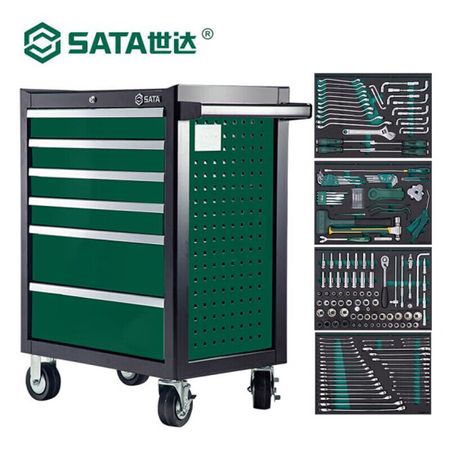 SATA 09932 Набор универсальных тележек для ремонта машин, 242 предмета + тележка для инструментов с 6 ящиками