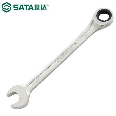 SATA 43204 Ключ с храповым механизмом с фиксированной головкой, сливовой открытый ключ, сливовой открытый ключ двойного назначения, полностью полированный хром-ванадиевая сталь с высоким крутящим моментом, 11 мм