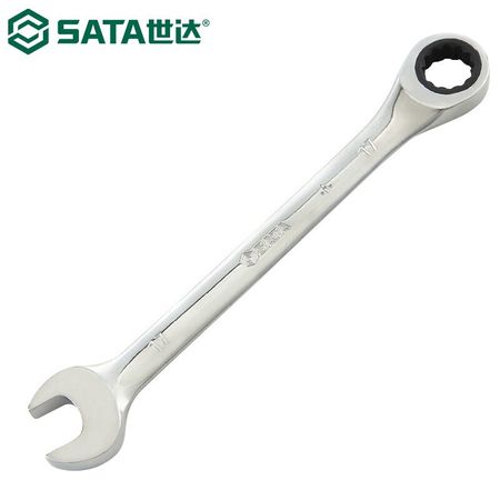 SATA 43217 Ключ с храповым механизмом с фиксированной головкой, сливовой открытый ключ, сливовой открытый ключ двойного назначения, полностью полированный хром-ванадиевая сталь с высоким крутящим моментом, 27 мм