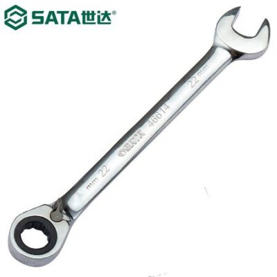 SATA 46603, двусторонний гаечный ключ с храповым механизмом, открытый гаечный ключ, двойной гаечный ключ, полностью полированный, хром-ванадиевая сталь с высоким крутящим моментом, 10 мм