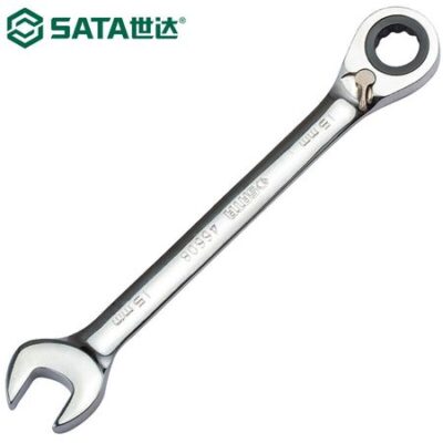 SATA 46608 храповой ключ, двусторонний сливовой открытый ключ, сливовой открытый двойной универсальный быстрый ключ, полностью полированный, большой крутящий момент 15 мм