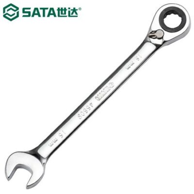 SATA 46609 храповой ключ, двусторонний сливной открытый ключ, сливовой открытый двойной универсальный быстрый ключ, полностью полированный, большой крутящий момент 16 мм