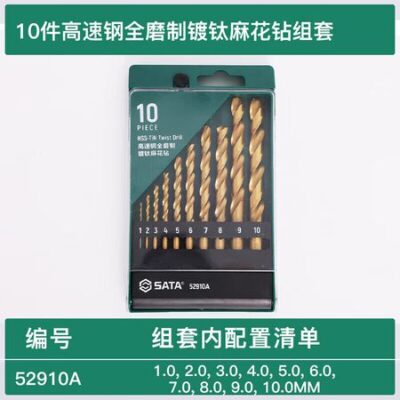 SATA 52910A Набор спиральных сверл из быстрорежущей стали, 10 предметов, полностью шлифованные, с титановым покрытием