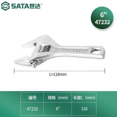 SATA 6-дюймовый ключ для ванной комнаты из золотой стали, большой разводной ключ с открытой короткой ручкой 47232