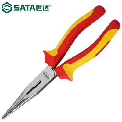 SATA 70132 изолированные плоскогубцы с острыми концами высокого напряжения VDE1000V устойчивые к давлению плоскогубцы с длинными носками хром-ванадиевая сталь 8 дюймов 212 мм