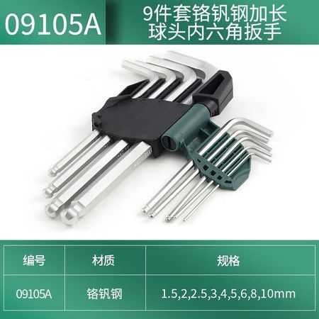 SATA, 9 предметов, набор шестигранных ключей с удлиненной шаровой головкой, набор шестигранных ключей из хромованадиевой стали 09105A