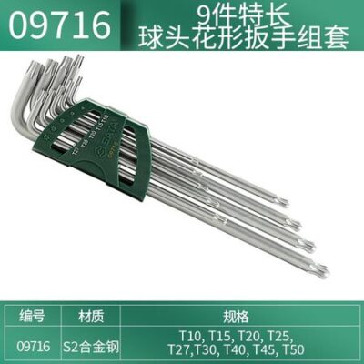 SATA, 9 предметов, специальный набор ключей с длинной шаровой головкой в форме цветка, шестигранный ключ в форме сливы, звездообразная отвертка с шаровой головкой 09716