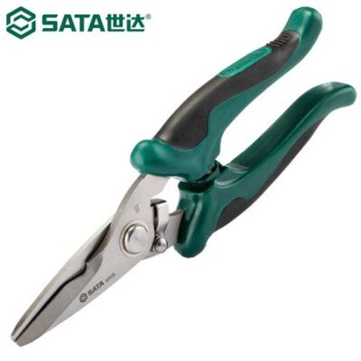 SATA 93105 Ножницы электрика с двухцветной ручкой, мощные универсальные ножницы электрика, ножницы для кабеля 7 дюймов