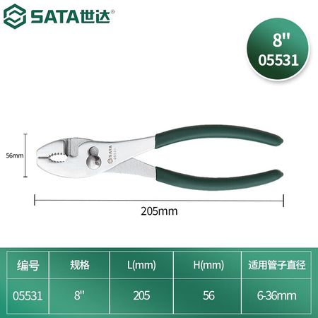 SATA карповые плоскогубцы, 8 дюймов, регулируемые плоскогубцы, плоскогубцы для рыбьего рта, авторемонт, плоскогубцы для рыбьего хвоста, плоскогубцы для водопроводных труб 05531