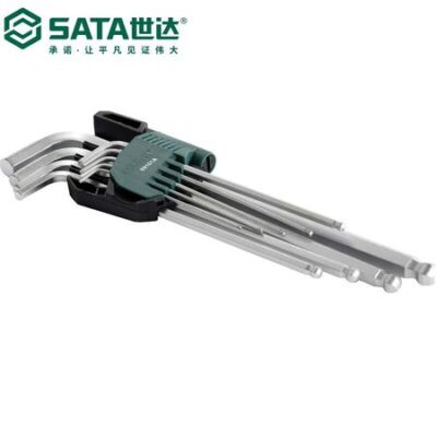 SATA Набор из 9 предметов из хромованадиевой стали, удлиненная шаровая головка, набор шестигранных ключей, метрические, удлиненная, удлиненная сферическая головка, шестигранная 09101A точечный