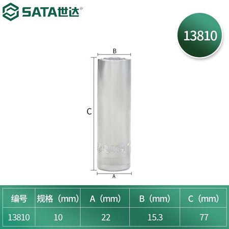 SATA Tools серия 12,5 мм, 12-угольная длинная головка, торцевой ключ для ручного ключа, 10 мм, 13810, хромованадиевая сталь