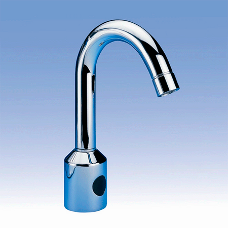 смеситель предназначен для подачи теплой и холодной воды, температура настраивается вручную угловыми вентилями, реагирует на присутствие рук в чувствительной зоне до 0,3 м. от датчика немедленным пуском воды, вода выключается после удаления рук из зоны чувствительности, время задержки выключения воды возможно настрoить в диапазоне 0,25 — 7,75 сек., автоматическая настройка чувствительности