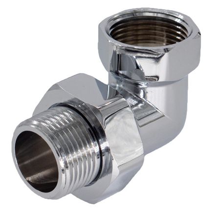 Для полотенцесушителя Диаметр резьбы: 1″ ВР х 1″ НР Рабочая температура: до 100°С Рабочее давление: 10 бар Материал: латунь с хромированным покрытием Дополнительно: угловая американка