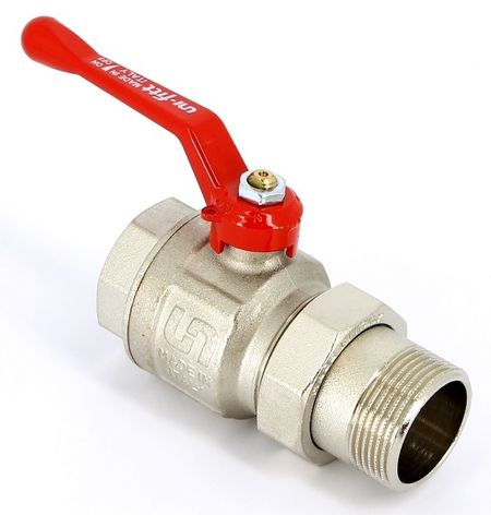 Шаровый кран Uni-Fitt (Юни-Фит) НВ 1 1/4 с разъемным соединением, полнопроходной, ручка устанавливается на трубопроводе в любом удобном месте, может использоваться в системах водоснабжения, отопления. Конструкция крана имеет полнопроходную конструкцию, которая обеспечивает беспрепятственное перемещение рабочей среды по трубопроводу.