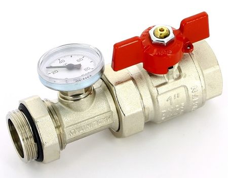 Шаровый кран Uni-Fitt (Юни-Фит) НВ 1 с разъёмным соединением и термометром для кол. групп, полнопроходной, бабочка отличается высоким качеством и долговечностью, что обеспечивается использованием при производстве качественных материалов. Кран оснащен термометром для контроля температурного режима.