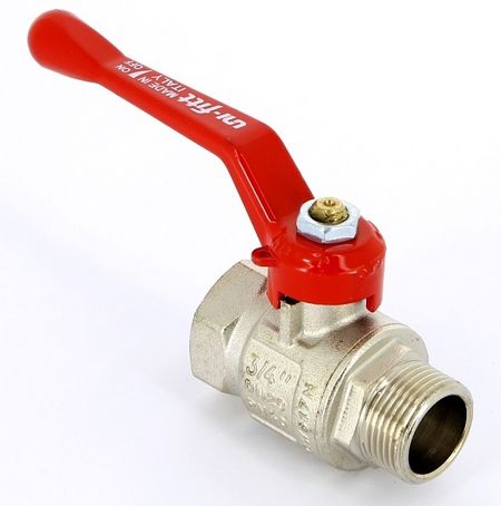 Материалы: уплотнение шара тефлон, уплотнение штока NBR, шток латунь, ручка алюминий