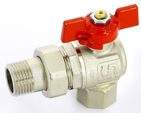 Шаровый кран Uni-Fitt (Юни-Фит) шаровой НВ 1/2 с разъемным соединением, полнопроходной, бабочка является запорным элементом на трубопроводе и позволяет перекрывать поток. Кран оснащен наружной резьбой и обладает полнопроходным корпусом с уплотнительным кольцом. Для регулирования используется ручка-бабочка из алюминия.