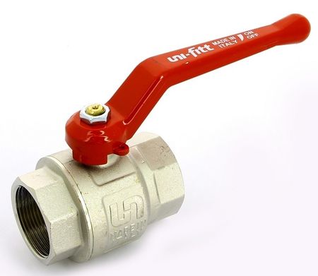 Шаровый кран Uni-Fitt (Юни-Фит) ВВ 1 1/2 полнопроходной, ручка является сантехническим устройством, которое используется для подключения к системе холодного или горячего водоснабжения сантехнических приборов и различных типов отопительных систем. Корпус крана изготовлен из латуни марки CW617N, которая имеет никелированное покрытие.