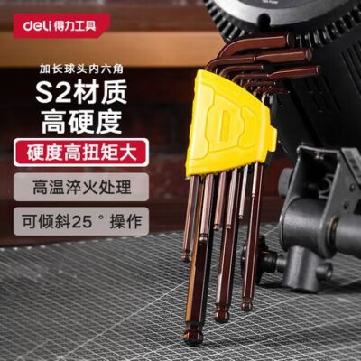 Шестигранный ключ Deli, 9 предметов, набор ключей с удлиненной шаровой головкой, отвертка, бронза, нержавеющий материал сверхвысокой твердости S2