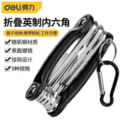 Шестигранный ключ Deli DL230709Y Британский складной набор шестигранников с плоской головкой, рама из 9 предметов из алюминиевого сплава