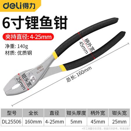 Щипцы для карпа Deli, 6-дюймовые плоскогубцы для рыбьего рта, плоскогубцы для рыбьего хвоста, многофункциональный зажим для авторемонта, поворотные скользящие зубья DL25506