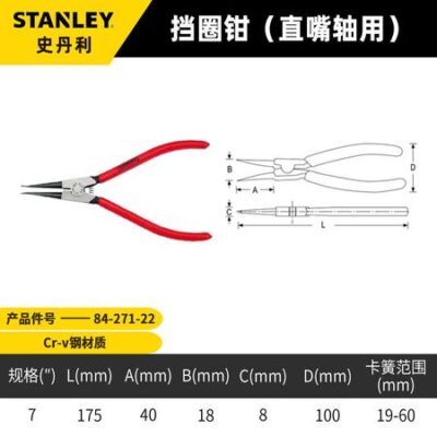 Щипцы для стопорных колец Stanley для валов с прямой горловиной, щипцы для стопорных колец для наружных хомутов, щипцы для пружинных клещей для стопорных колец 7 дюймов 84-271-22