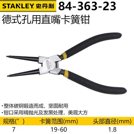 Щипцы для стопорных колец Stanley, плоскогубцы для стопорных колец, плоскогубцы для стопорных колец, 7-дюймовая прямая горловина для отверстия (внутренняя карта) 84-363-23