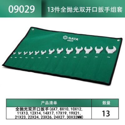 Shida 09029 Метрический двойной рожковый ключ, 13 предметов, полностью полированный, комбинированный набор двойных рожковых ключей, ручные инструменты Набор полностью полированных двойных рожковых ключей, 13 предметов 13 09029 SATA
