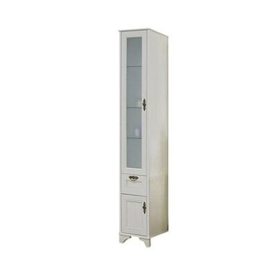 Шкаф-пенал Акватон Идель (1A198003IDM7L) левосторонний, дуб белый. Вместительный выдвижной ящик. За верхней и нижней створками расположены регулируемые по высоте стеклянные полки.