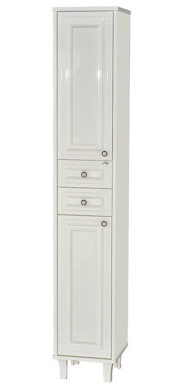 Шкаф-пенал Misty Шармель 35 L светло-бежевая эмаль обладает всеми необходимыми качествами, для комфортного использования в помещениях с повышенной влажной средой. Напольная конструкция на ножках снабжена внутренними стеклянными полками для хранения и предусматривает два центральных выдвижных ящика на доводке. Украшением модели служат фасады с филенчатой рамной фрезеровкой, дополненные аккуратными ручками-кнопками с белыми эмалевыми вставками.