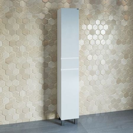 Шкаф-пенал напольный Марс белого цвета. Корпус изделия выполнен из влагостойкого ЛДСП, фасад из МДФ. Фасадные и боковые стенки мебели окрашены высокоглянцевой эмалью. На дверках петли плавного закрывания.