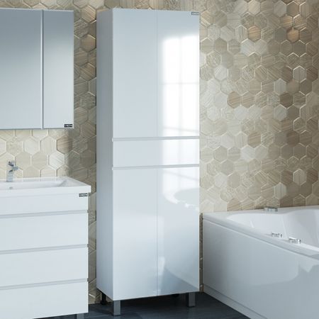 Шкаф-пенал напольный Марс белого цвета. Корпус изделия выполнен из влагостойкого ЛДСП, фасад из МДФ. Фасадные и боковые стенки мебели окрашены высокоглянцевой эмалью. На дверках петли плавного закрывания.