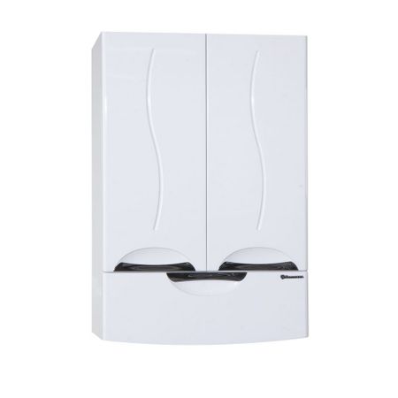 Шкаф Bellezza Глория 50 белый с ящиком удачно заполнит место над стиральной машиной, тумбой или просто на стене. Удобные полки и компактный выдвижной ящик помогут разместить все средства для стирки и другие нужные предметы. Эргономичные хромированные ручки размещены в резных углублениях фасада, что придаёт шкафчику шарм и привлекательность. Глянцевое влагостойкое покрытие украшает изделие, защищая его от влаги.