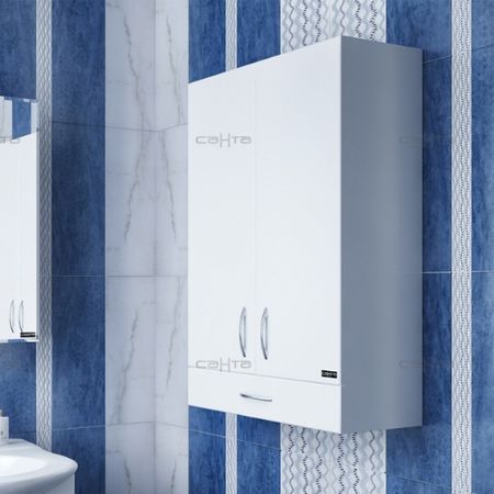 Шкаф СанТа подойдет для ванной комнаты любого размера. Его можно разместить над комодом либо стиральной машиной, он компактный, не занимает много места. Выполнен из влагостойких материалов и покрыт пленкой ПВХ методом мембранно-вакуумного прессования, который обеспечивает почти 100%-ую водонепроницаемость поверхности. Два распашных фасада снабжены доводчиками плавного закрывания. Внутреннее пространство разделено полками. Нижний ящик на шариковых направляющих полного выдвижения закрывается плавно и бесшумно. Фасады дополнены хромированной фурнитурой.