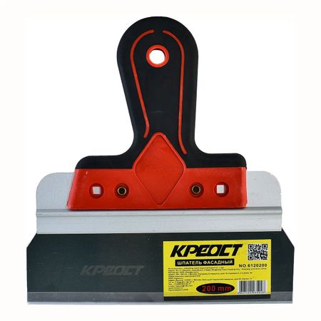 Фасадный шпатель, представляет собой инструмент, используемый в отделочных работах для нанесения, выравнивания строительной смеси. Шпатель состоит из полотна, изготовленного из нержавеющей стали, и двухкомпонентной рукоятки. Рукоятка не скользит в руке во время работы.