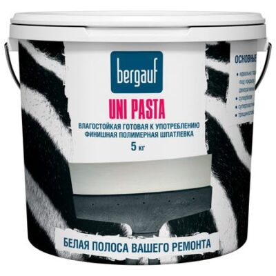 Главная » Строительство и ремонт шпатлевка готовая BERGAUF Uni Pasta U финишная влагостойкая 5кг, арт. UniPastaU5 Просмотров 8 Вес: 5кн Вид смеси: готовая Тип поверхности: минеральная, гипсокартон Тип помещение: сухое, влажное Цвет: белый BERGAUF