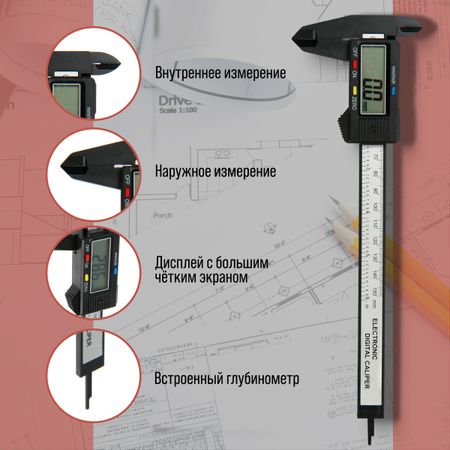 Штангенциркуль электронный лом, с глубиномером, пластиковый, 150 мм