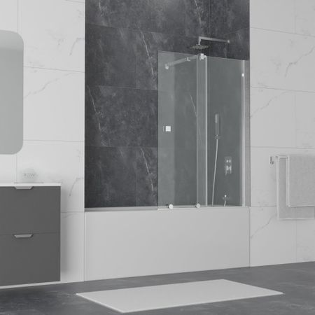 Шторка на ванну неподвижная с раздвижной дверью на нижних роликах. Верхний держатель 1000 мм.