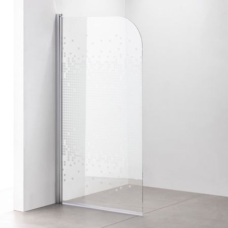Толщина стекла: 5 мм Ширина: 75 см Материал: закаленное стекло, алюминий Высота: 140 см Профиль: алюминий, 1 мм, хром Количество створок: 1 Рисунок стекла: мозаика