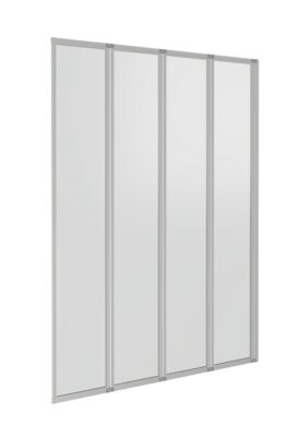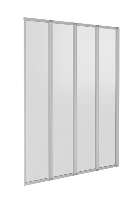 Шторка на ванну складная 4 створчатая, арт. GR4-100-G-WE, закаленное стекло грэйп 4 мм. Размер: 100 х 140 см. Профиль пристенный алюминиевый регулируемый +10 мм. Створки складываются на 360 °. Универсальная установка с левой или правой стороны