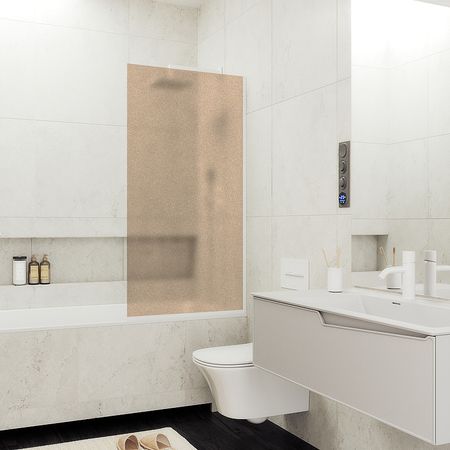 Шторка на ванну Maybah Glass MGV-75-1у 700×1400 в узком профиле Белый стекло бронзовое матовое
