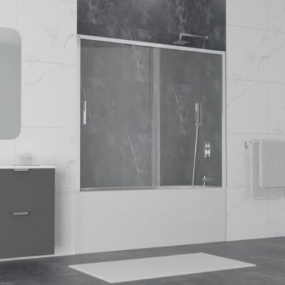 Шторка на ванну, сдвижная дверь с автодоводчиком. Толщина закаленного, безопасного стекла 6 мм.