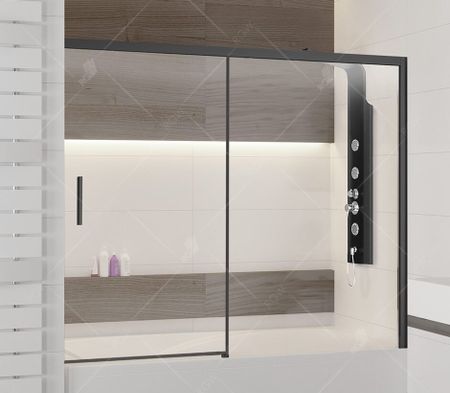 Шторка на ванну, сдвижная дверь с автодоводчиком. Толщина закаленного, безопасного стекла 6 мм.