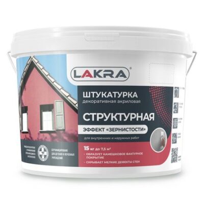 Главная » Строительство и ремонт штукатурка декоративная ЛАКРА структурная зернистость 15кг, арт.0007815 Просмотров 15 структурная с эф.зернист.15кг д/внутр.и наружн.работ, влагост.,атмосферост.,паропрон морозост.,не содерж.растворит. ЛАКРА