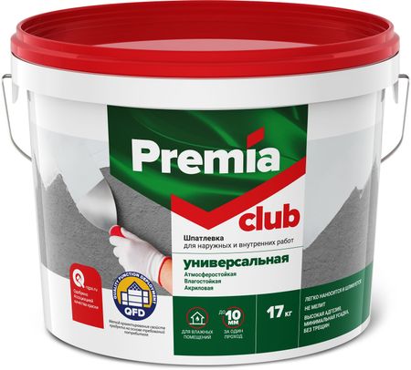 Главная » Строительство и ремонт Штукатурки для внутренних работ Premia Club Шпатлевка Premia Club универсальная для наружных и внутренних работ ведро 17 кг Просмотров 17 Широкий ассортимент по выгодным ценам. Регулярные акции. Программа лояльности Premia Club