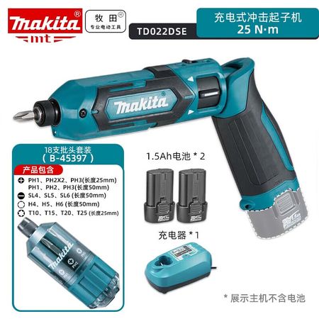 Шуруповерт складной Makita TD022DSE + два аккумулятора 7.2V/1.5Ah, зарядное устройство, комплект насадок из 18 предметов