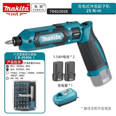 Шуруповерт складной Makita TD022DSE + два аккумулятора 7.2V/1.5Ah, зарядное устройство, комплект насадок из 31 предмета