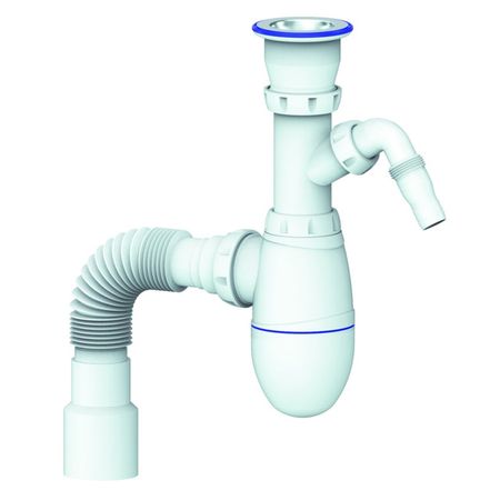 Назначение: для мойки Тип сифона: бутылочный Выпуск: прикручивающийся Диаметр слива: 1.1/2″х40 мм Материал: полипропилен, нержавеющая сталь Комплектация: сифон, выпуск, отвод для стир. машины, винт 6х40, чашка из нерж. стали, гибкий отвод 40х40/50 Цвет: белый